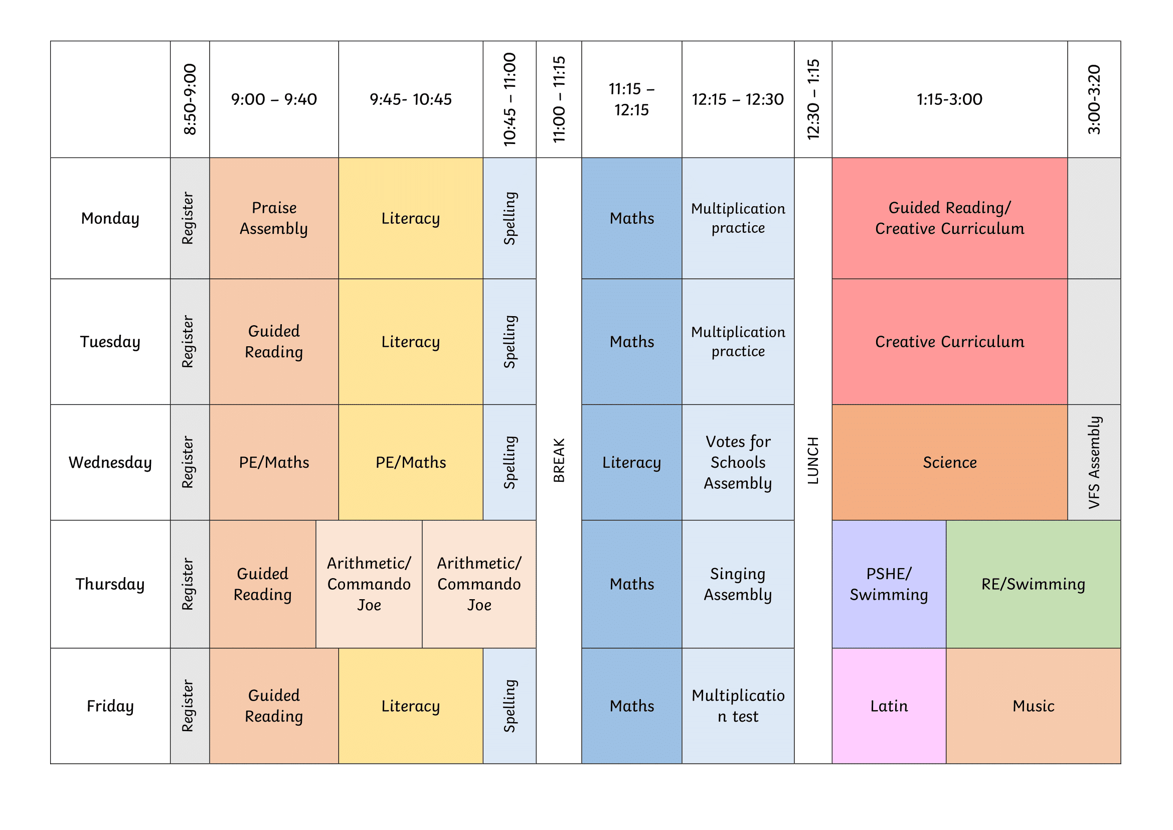 Swimming is fortnightly.