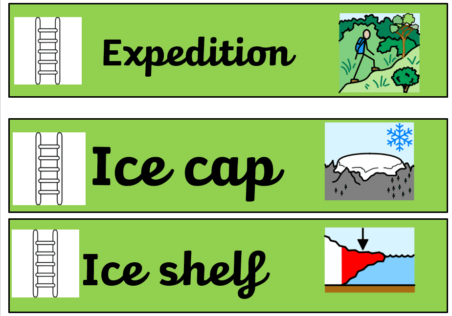 Can you help your child learn to read and understand the meaning to these topic related words for our topic Frozen Kingdoms?