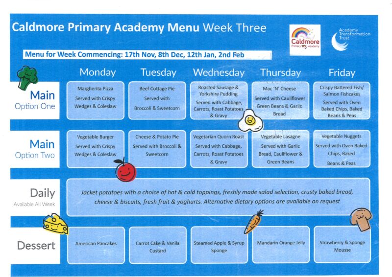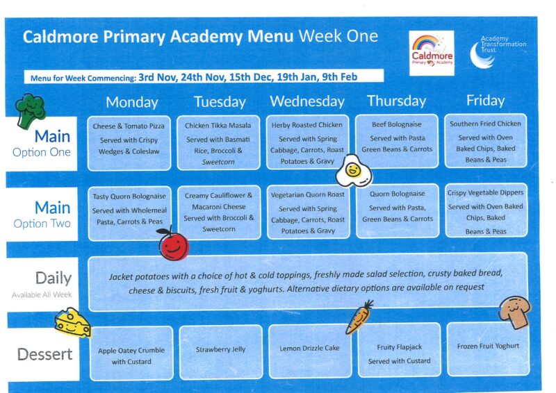 The children may bring in a packed lunch from home or alternatively have a nutritious lunch from our school dinner lunch menu.